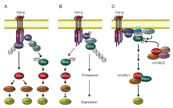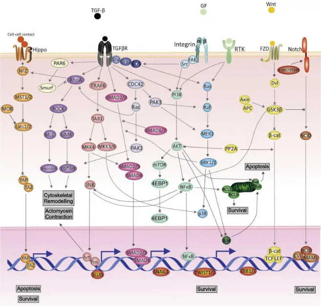 TGF-βはEMTの主要な誘導因子の1つであり、Smad依存性経路とSmad非依存性経路の両方を介してEMTを調節します。