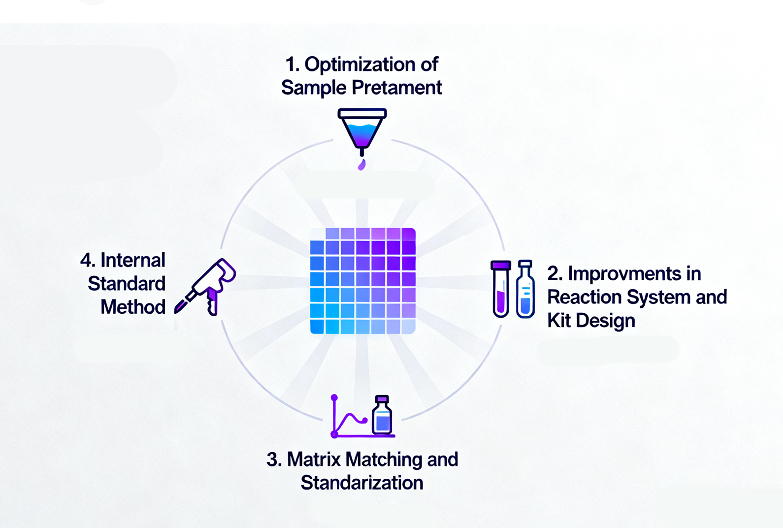 希釈法:サンプルを適切に希釈することにより、マトリックス成分の濃度を低下させ、反応への干渉を最小限に抑えます。ただし、2点に注意する必要があります。過剰な希釈は、標的分析物濃度が検出限界を下回ることを防ぐために回避する必要があります。また、希釈後にマトリックス効果が大幅に低減されたかどうかを確認する必要があります。
